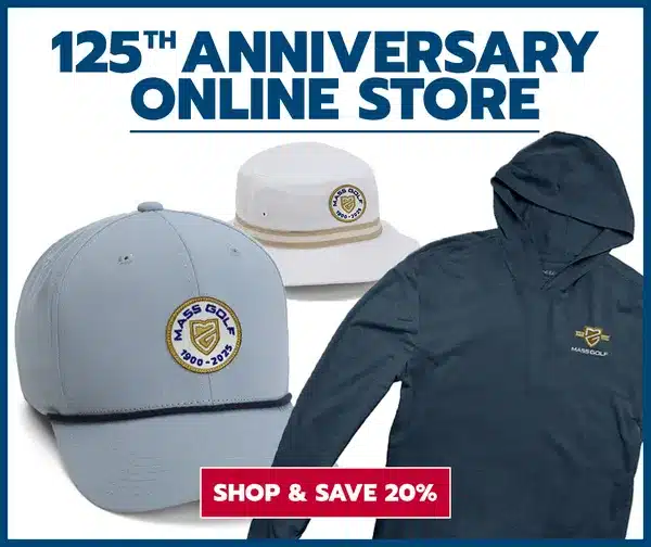 Check out the all-new Mass Golf 125th Anniversary store. As a benefit to Mass Golf members, orders are eligible for Mass Golf’s 20% discount. Use promo code MASSGOLF25 at checkout to take advantage of this offer.